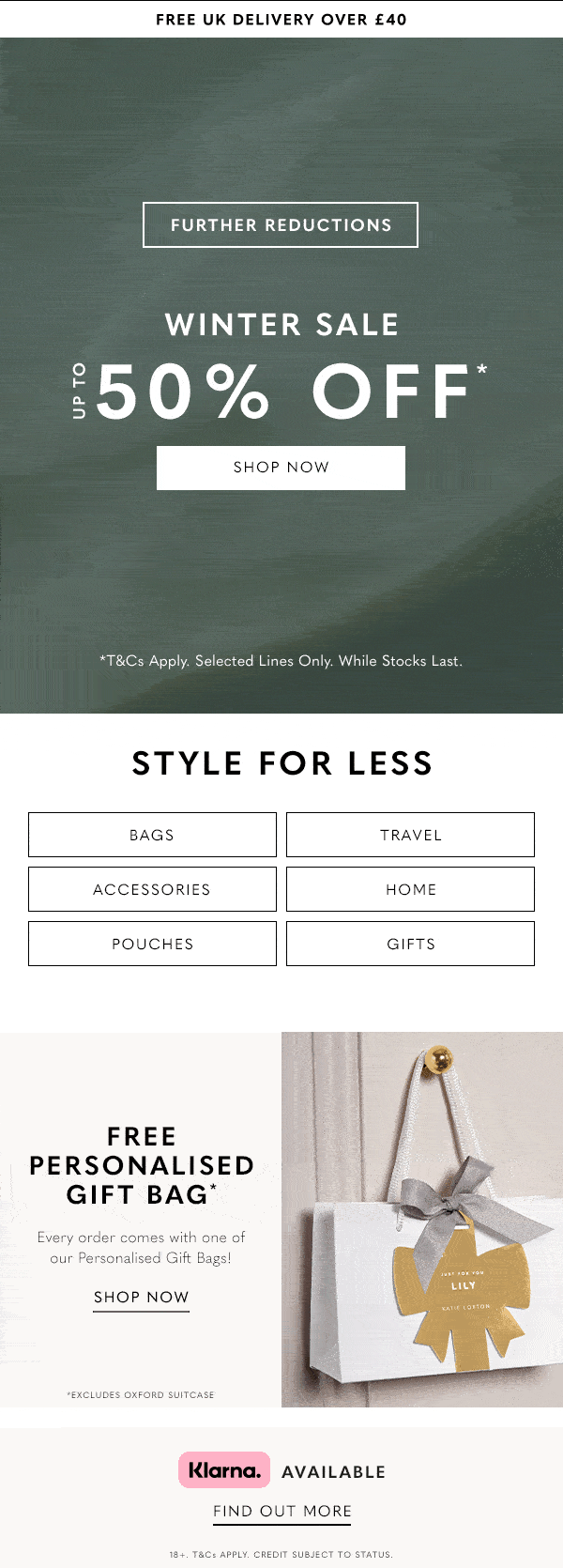 The Winter Sale is an annual occurring event pre-black Friday which goes live across store, socials and website.